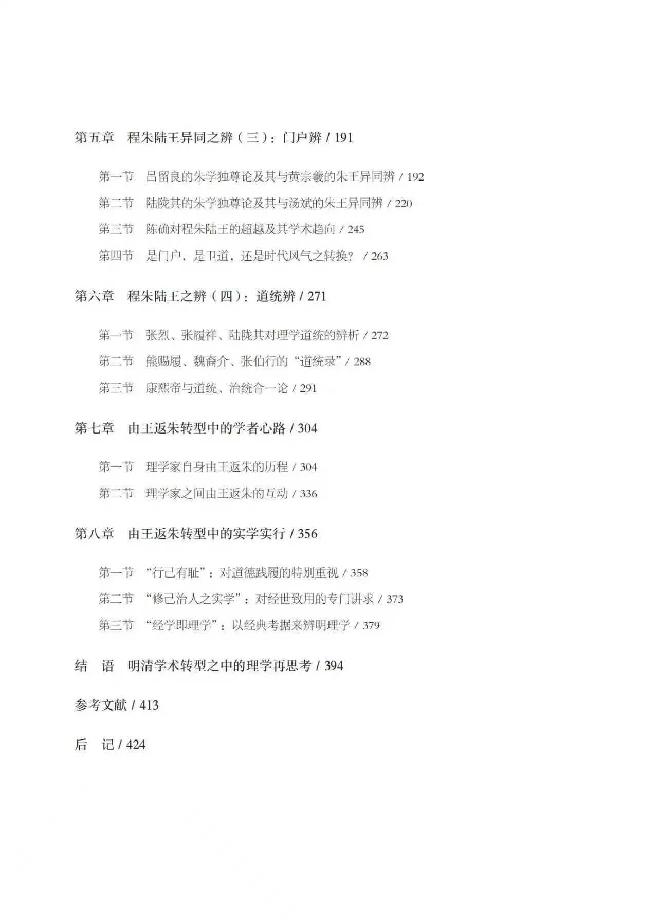 结语,对明清学术转型过程之中的“理学”进行再思考。特别是在从理学到朴学转型之中,义理之学与考据之学的关系究竟如何,“由王返朱”转型本身的意义又何在?都是极为复杂的问题,值得仔细加以分辨。何况理学并未从整体上转变为考据学,作为官方意识形态重要组成部分的理学与作为士大夫个体修身实践依据的理学,其实都是清代学术的主体,只是学界的热点已转换为考据学了。相关的思考,必须结合学界关于明清学术转型的不同观点来进一步阐述。